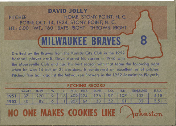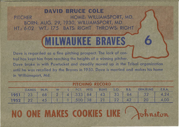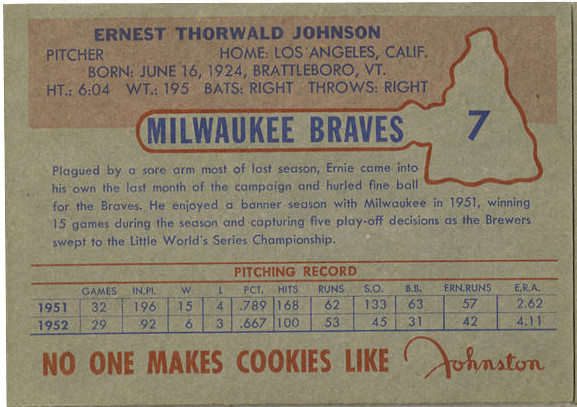 Milwaukee Braves cards. The cards could be found in their Pops Cookies