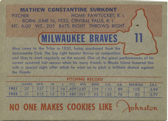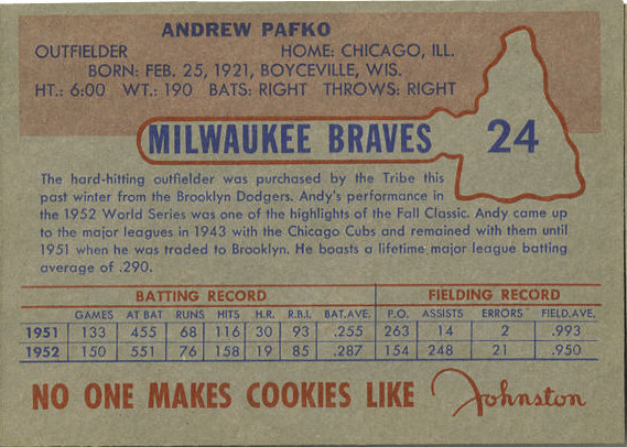 from the 1953 Johnston Cookie set. This is the first set and features 25
