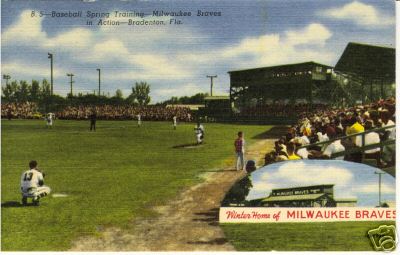 Postcard of the Milwaukee Braves Spring Training in Bradenton, FL. Date of postcard unknown.
