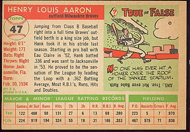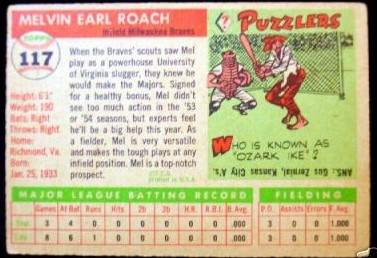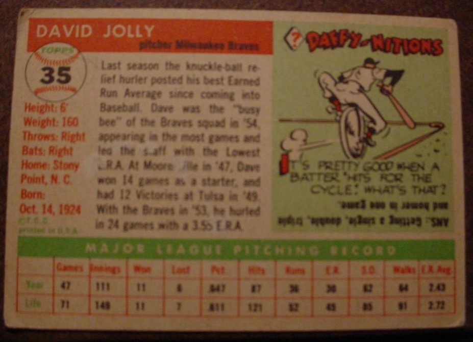 ![]() Original 1955 Topps Wax Pack, retail 1 cent (1 card). Below are the Milwaukee Braves baseball cards from the 1955 Topps set. If you have any pictures I am missing or one of a better quality, drop me an email. |