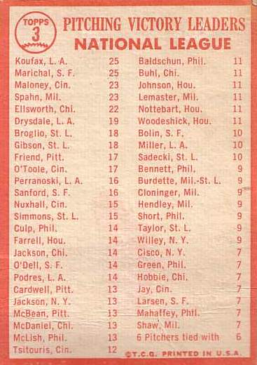 Card #3 1963 NL Pitching Leaders: Warren Spahn