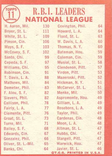 Card #11 1963 NL RBI Leaders Hank Aaron