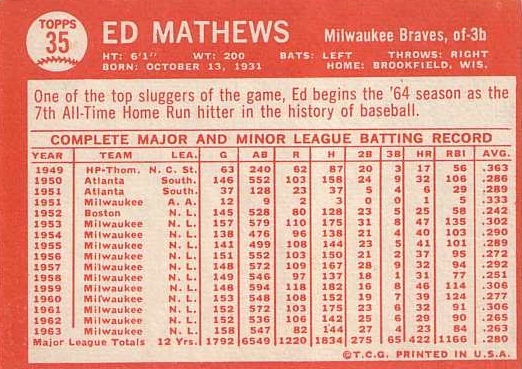 Card #35 Eddie Mathews