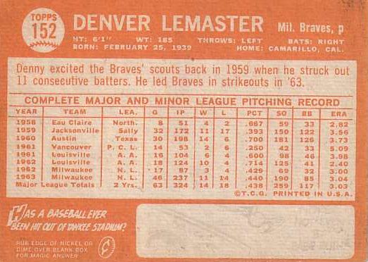 Card #152 Denny Lemaster