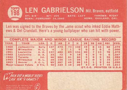 Card #198 Len Gabrielson