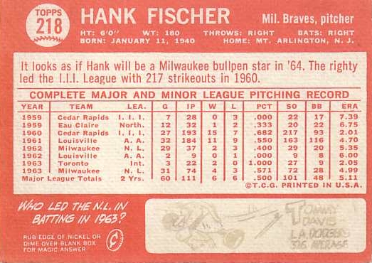 Card #218 Hank Fischer