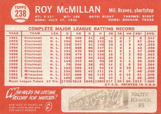 Card #238 Roy McMillan