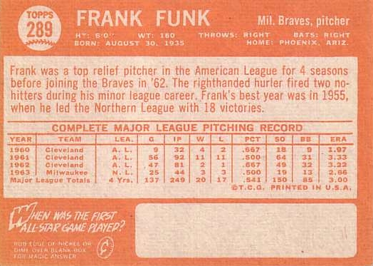 Card #289 Frank Funk