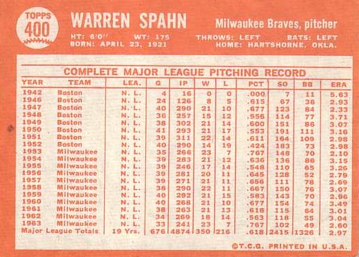 Card #400 Warren Spahn