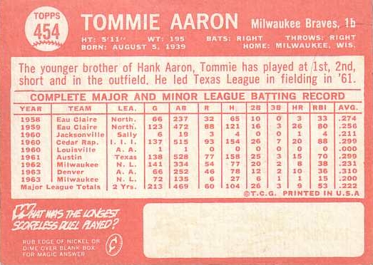 Card #454 Tommie Aaron