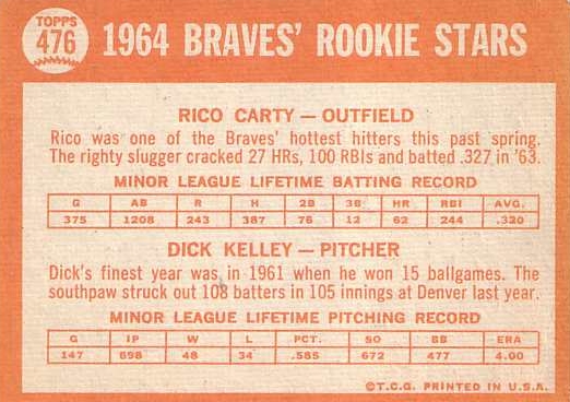Card #476 Rico Carty / Dick Kelley