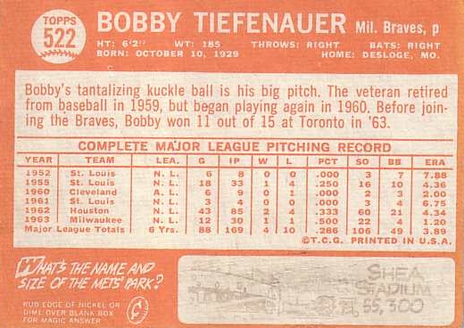 Card #522 Bob Tiefenauer