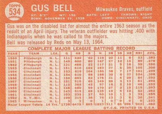Card #534 Gus Bell