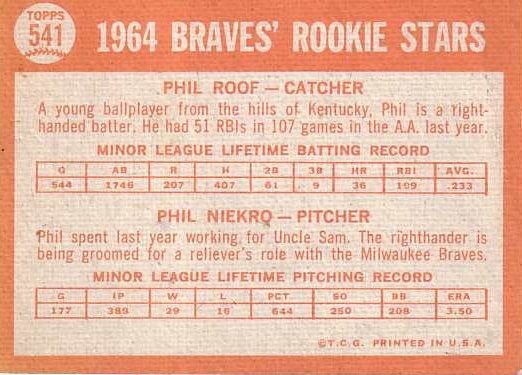 Card #541 Braves Rookies - Roof/Niekro