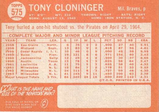 Card #575 Tony Cloninger